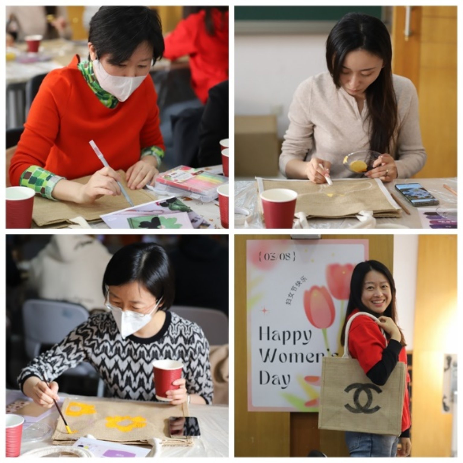 2023年3月7日,为了庆祝即将到来的三月女神节,数学学院工会组织了一场别开生面的原创手绘托特包活动——“流光三月,手绘新篇”,此活动得到了工会全体女教职工的热烈响应。
