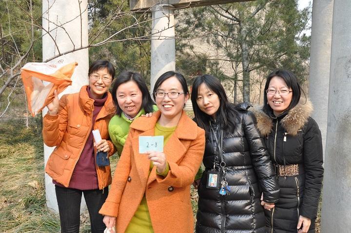 随着校工会孙丽主席“出发”的飒爽号令,数学学院工会三支小队开始行动。针对队伍构成,学院两队采用了协同行动、稳步前行的战略,以规定的十点目标而努力。不久,朗润园附近的小桥桥头标志点就映入眼帘,但也集中了大量等待拍照的队伍。费尽千辛万苦,两队总算合影完毕,却也耽误了不少时间,真是“万事开头难”。正当大部分队伍或折返或挤向眼前的小亭标志点时,数学学院两队另辟蹊径,向地图上较偏远的东北点进发,一路果然畅通无阻。“找到啦――”随着一声欢呼,老师们在朗润园两栋住宅楼之间的自行车棚上果然发现了黄色标志旗。大家喜逐颜开,迅速上前合影“登记”。接着两队再原路返回,此时小亭已是人去亭空,第三个点也顺利拿下。