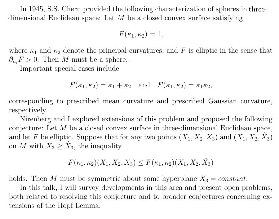 2025年beat365中文官网程民德讲座—— Symmetry of hypersurfaces and the Hopf Lemma