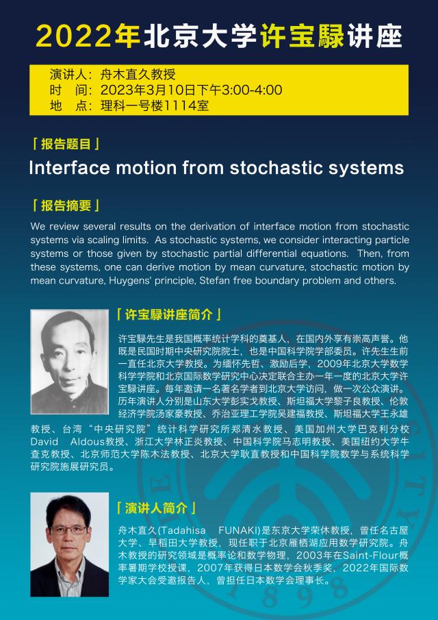 2022年beat365中文官网许宝騄讲座——Interface motion from stochastic systems