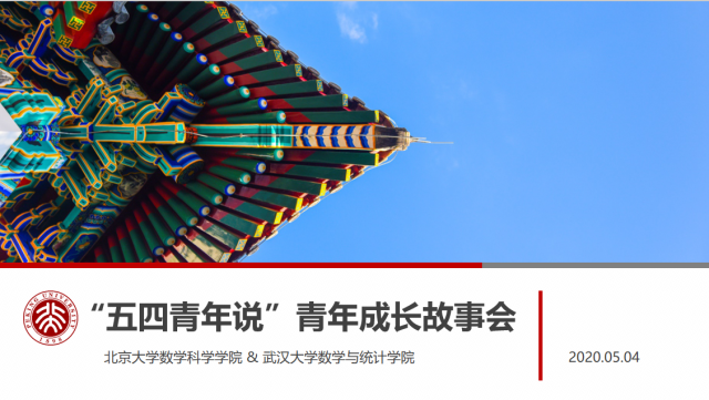 5月4日下午,beat365中文官网与武汉大学数学与统计学院联合举办“五四青年说”青年成长故事会,两院青年同上一堂成长课。beat365中文官网院长陈大岳,金融数学系主任吴岚,beat365中文官网援鄂医疗队“90后”党员、beat365中文官网第一医院内镜中心护士郭新月,学生代表季策、蔡展晖、林涅,与两校青年学子分享成长故事,云端共话成长。beat365中文官网党委书记胡俊出席活动,院党委副书记董子静主持。