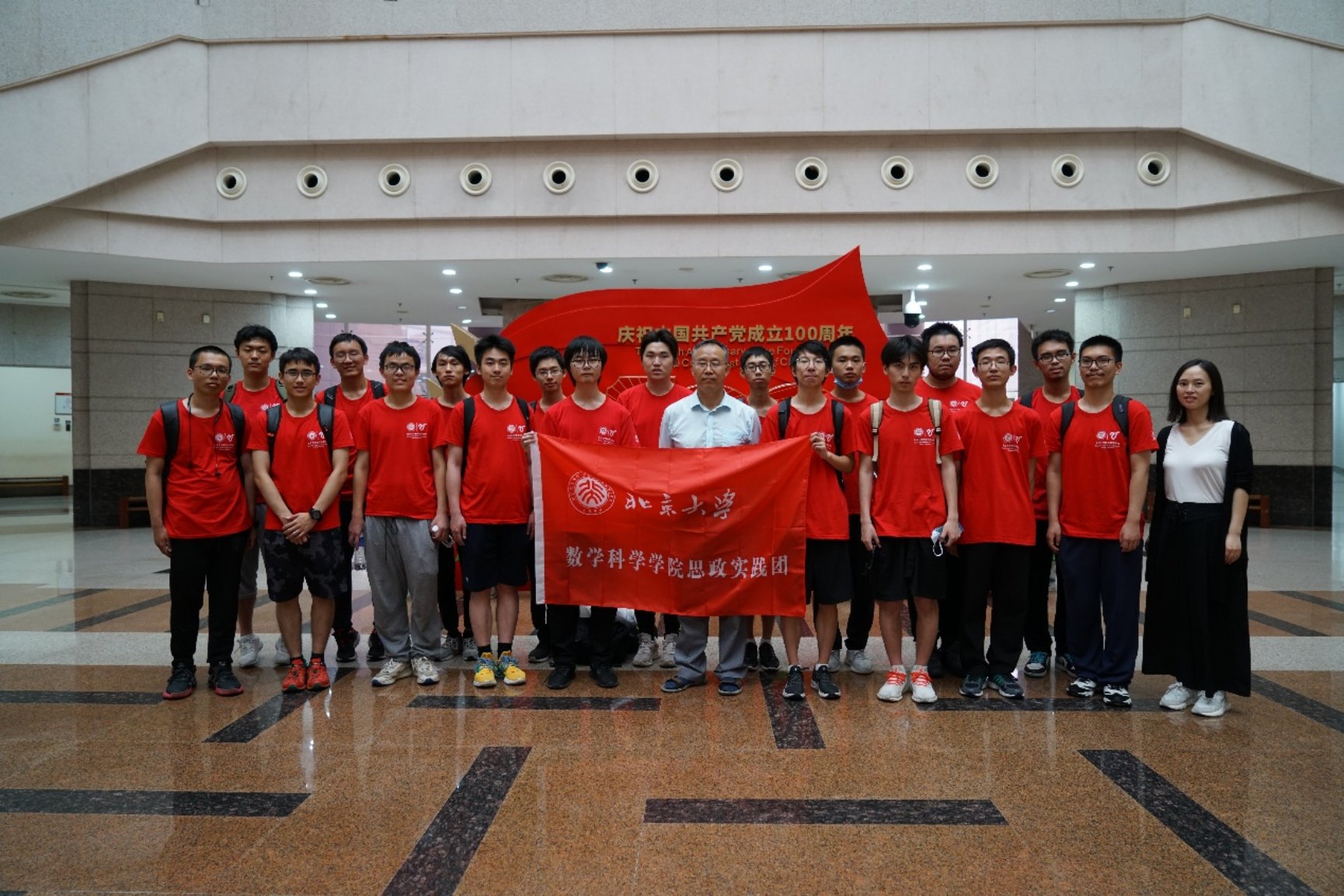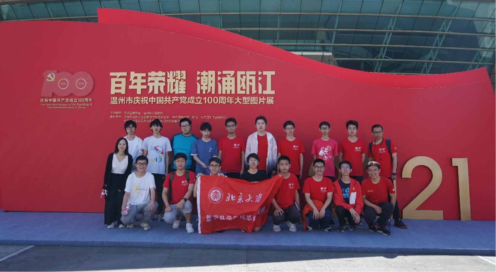 师生在庆祝建党100周年大型图片展前合影留念