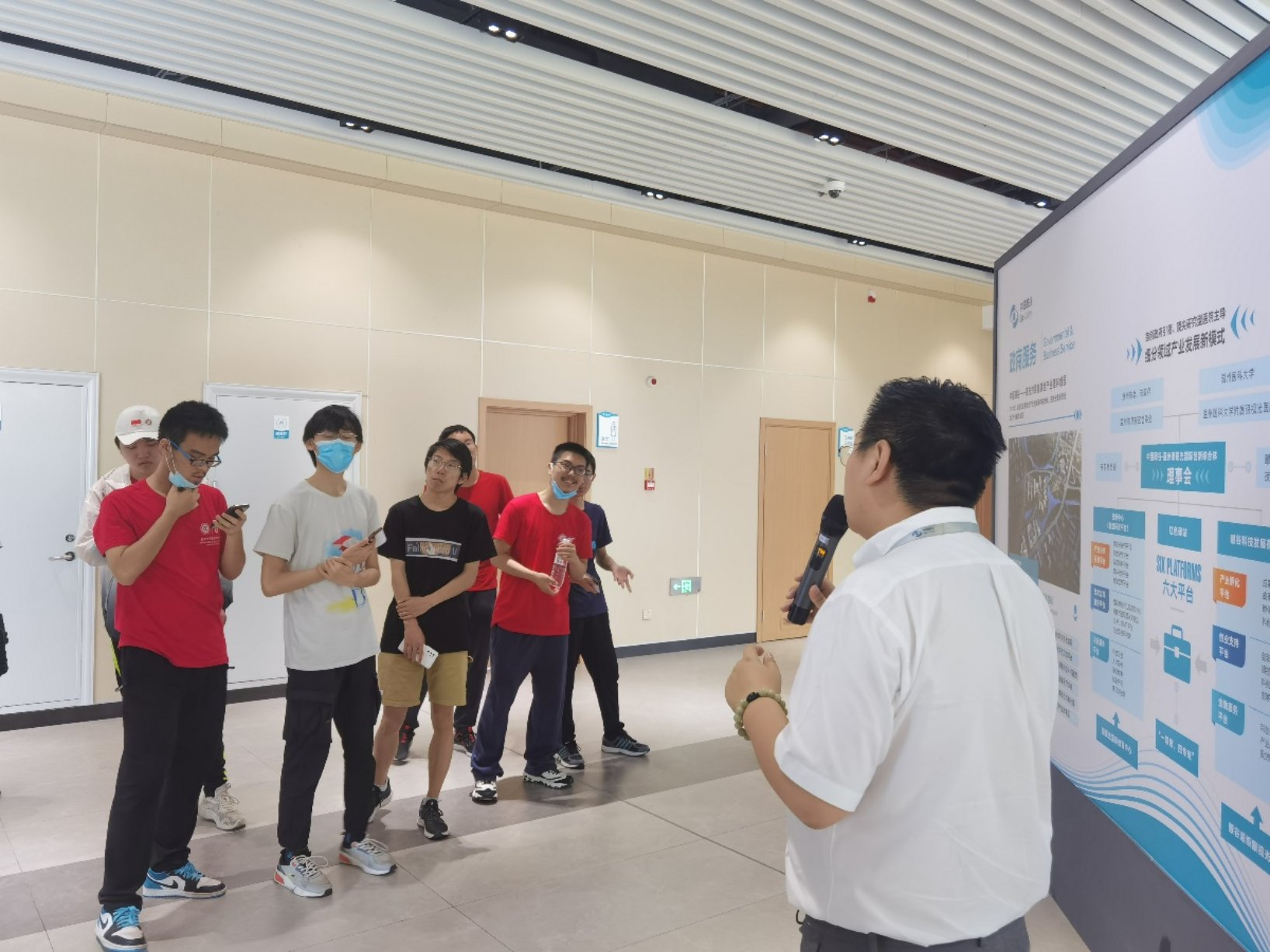 讲解员向同学们介绍研究院的产业发展新模式