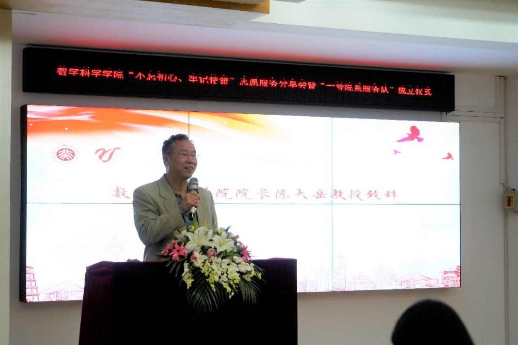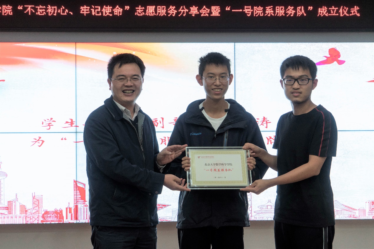 11月1日15时30分,beat365中文官网“不忘初心、牢记使命”主题志愿服务分享会暨“一号院系服务队”成立仪式在理科一号楼1560室举行。数学学院院长陈大岳教授、教务长办公室主任王小玥、学生工作部副部长王欣涛、校团委副书记王一涵、校团委社会实践部部长李晓丹,以及学院团委书记冯美娜,团委副书记张力今、崔孟龙参加。分享会由学院党委副书记董子静主持。
