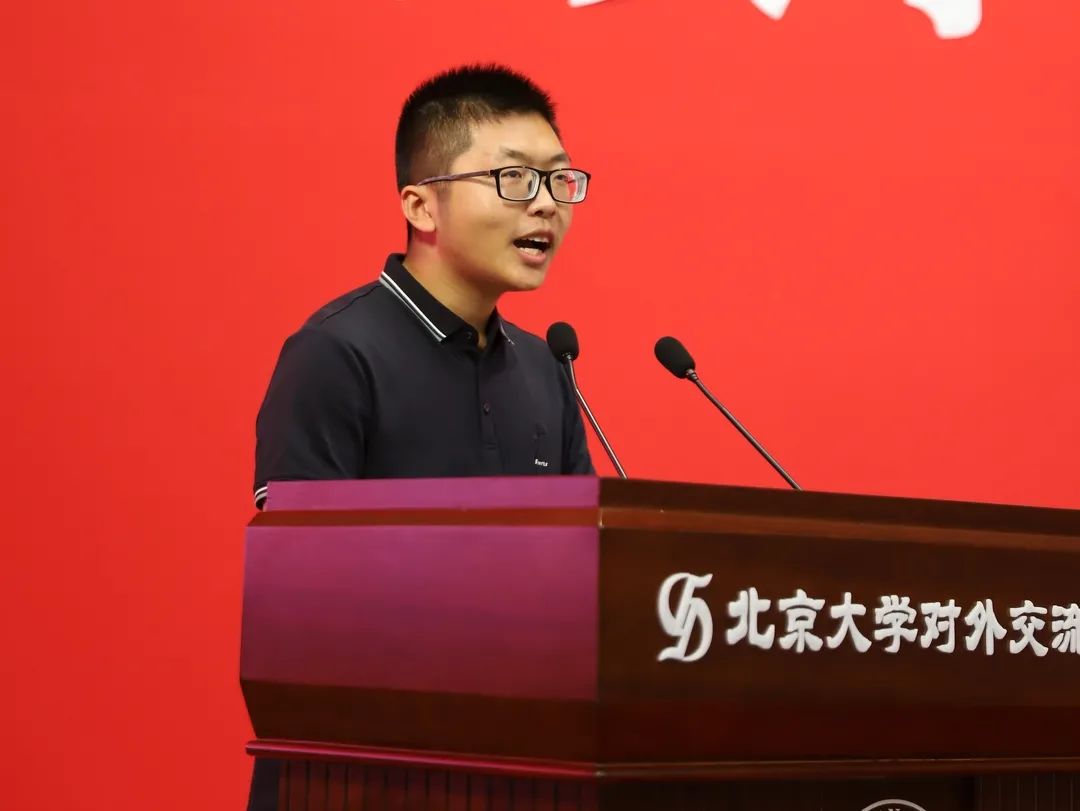 本科生新生代表、2020级本科生梁力元同学分享了自己经历了大连封城、再到顺利来校报到的心路历程,他通过社区工作者的战“疫”日记,读懂了中国防控新冠肺炎疫情的方案,也理解了在这场战“疫”中无数默默付出的工作者。他号召同学要珍惜时间、不负韶华。他说:“选择北大,就是选择与国家民族的命运深刻联系在一起。”