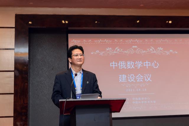 蒋一在开幕致辞中代表中国科学技术大学向会议的召开表示热烈祝贺,感谢国内包括各职能部门对中科大数学的发展长期的支持与帮助。相信中俄数学中心建设将有力推进两国数学界开展全方位合作与交流。在大家的共同努力下,中俄数学中心必将成为世界一流的国际性数学研究中心和高素质的人才培养基地。建立数学强国是几代数学人共同梦想。中科大经过六十多年发展,培养了一大批优秀数学家,拥有了国家数学与交叉科学中心合肥分中心、中国科学院吴文俊数学重点实验室等科研平台,成为我国数学研究的一支重要力量。中科大将全力支持中心建设,并希望以参与中俄数学中心建设为契机,在充分发挥学校所系结合科教融合办学的优势基础上,促进中俄合作,进而加强欧洲和美洲的合作,努力培养世界级数学精英人才,为提升我国数学基础研究的实力,加快数学强国的建设作出应有的贡献。