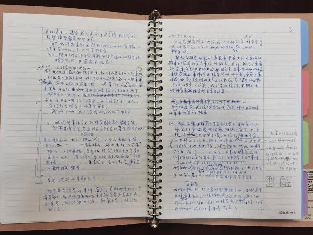 “每次读完书,我会给自己‘反刍’的时间。平时比较忙,我会隔上一段时间,最好是等到安静的假期,把读书笔记整理在本子上。整理笔记时会把读过的内容在大脑中重新排列。”