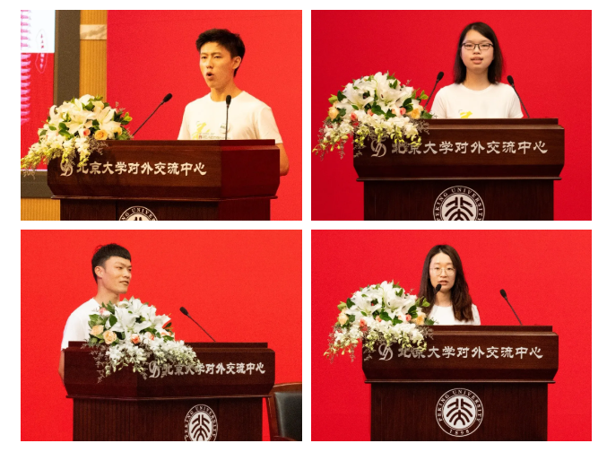 新生代表吴闻道(左上)、付梓垚(右上)、王奔奔(左下)、翟雨瑶(右下)发言