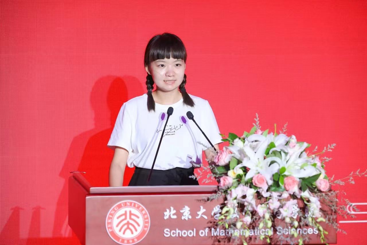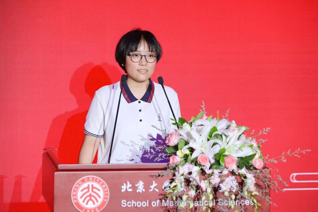 本科生新生代表、2023级本科生胡殊闻同学讲述了自己与数院结缘的故事,表达了对北大、对数学的热爱。她立下了“人生豪迈,年轻没有失败”的青春誓言,希望同学们用敏锐的眼光发现新问题,用严谨的思维解决新问题,通过创新创造奇迹。