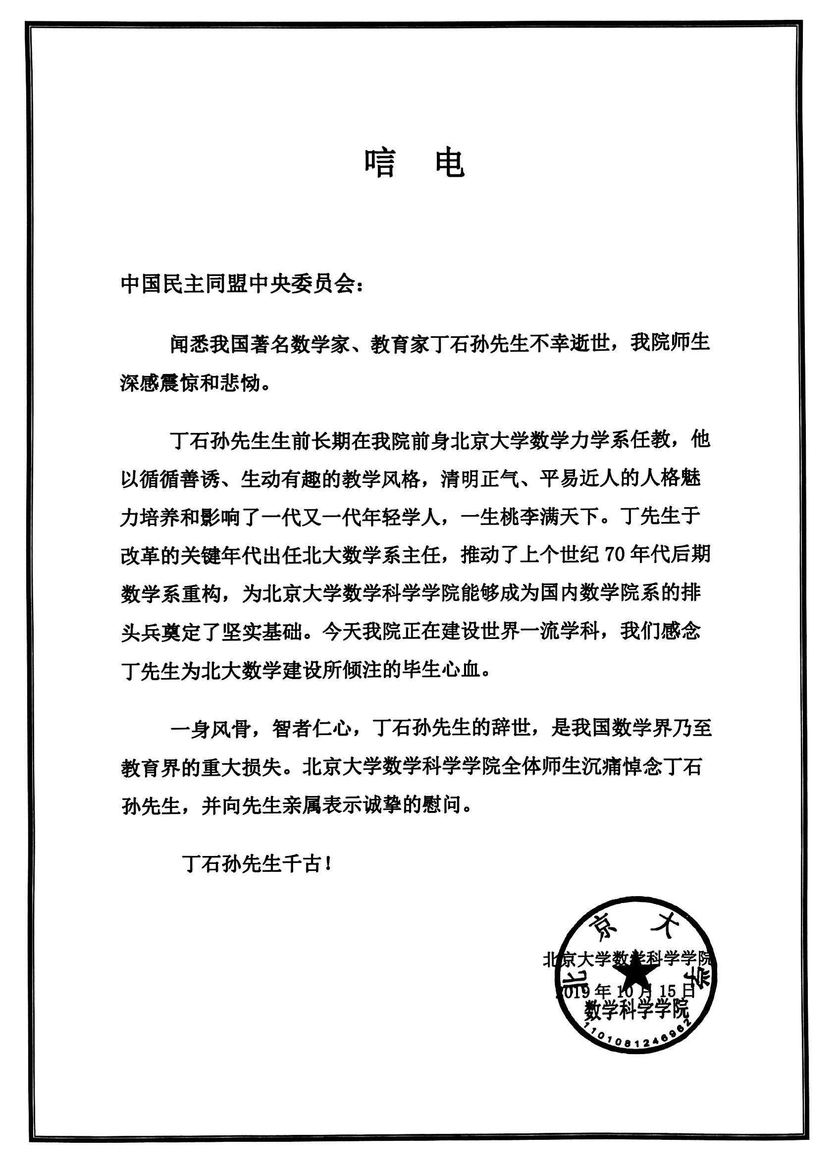 丁石孙(1927.9.5—2019.10.12)