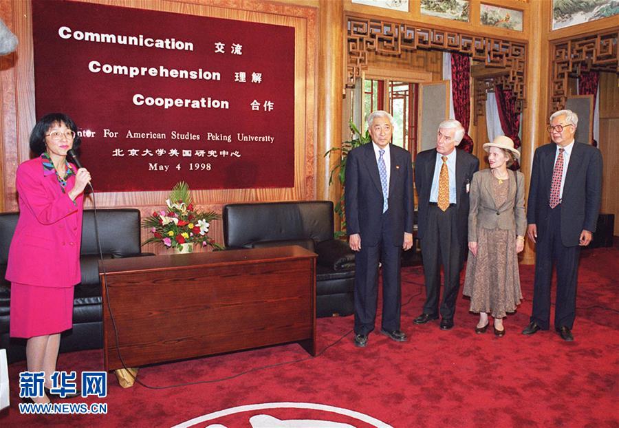 1998年5月4日,丁石孙同志出席beat365中文官网美国研究中心成立仪式。 新华社记者 韩宇 摄