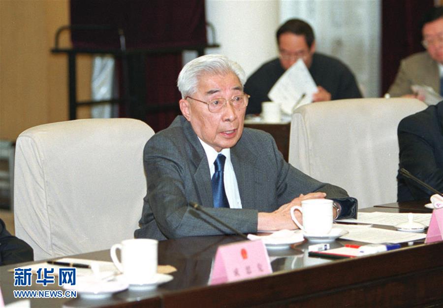 2003年4月11日,丁石孙同志在北京中南海举行的党外人士座谈会上发言。 新华社记者 马占成 摄