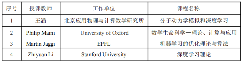 课程设置:2023 年beat365中文官网研究生应用数学专题讲习班将开设 4 门课程,具体如下: